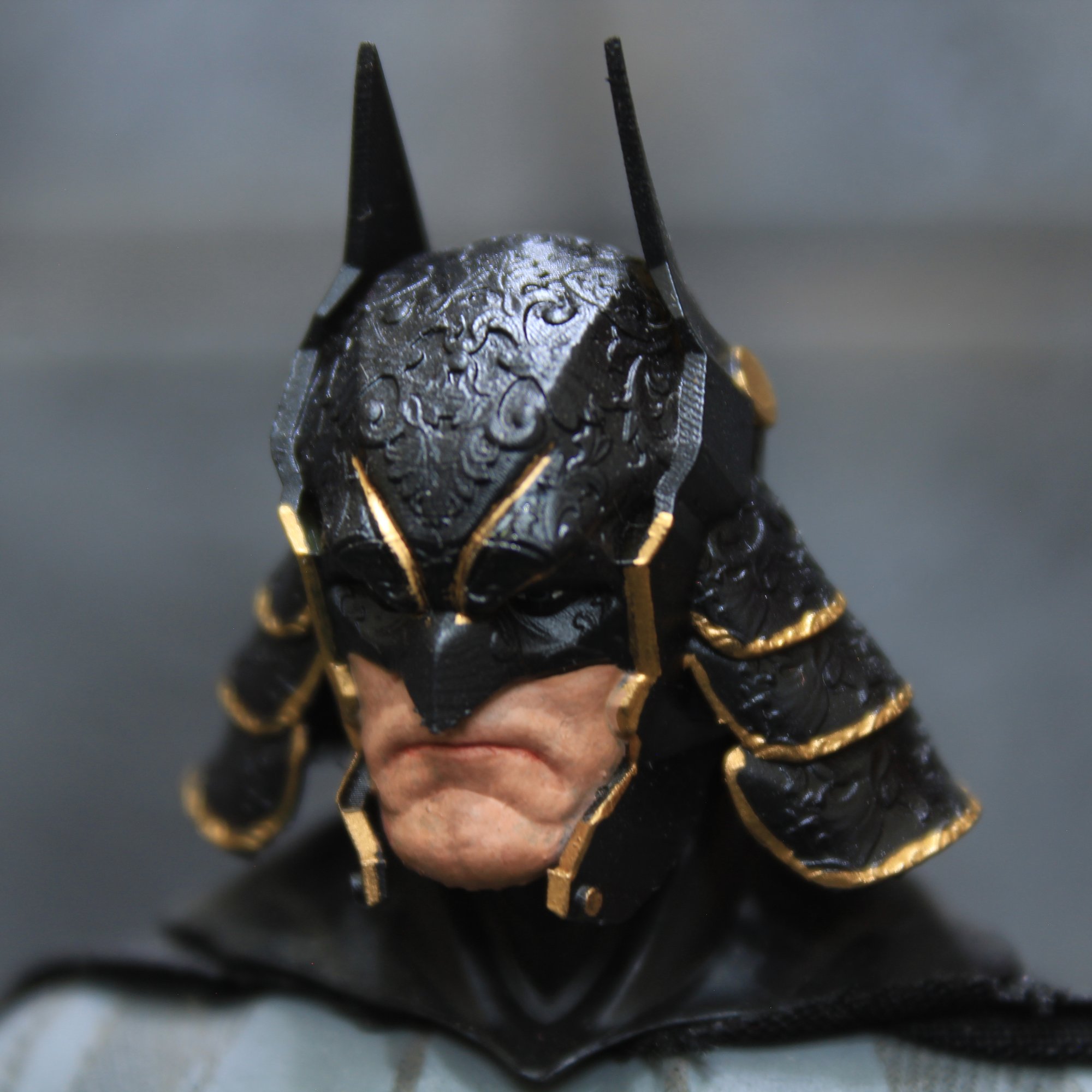 3d printed resin head sculpt to make Bruce Wayne's Batman Samurai action figure